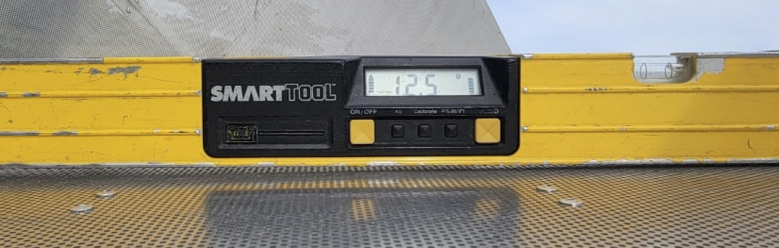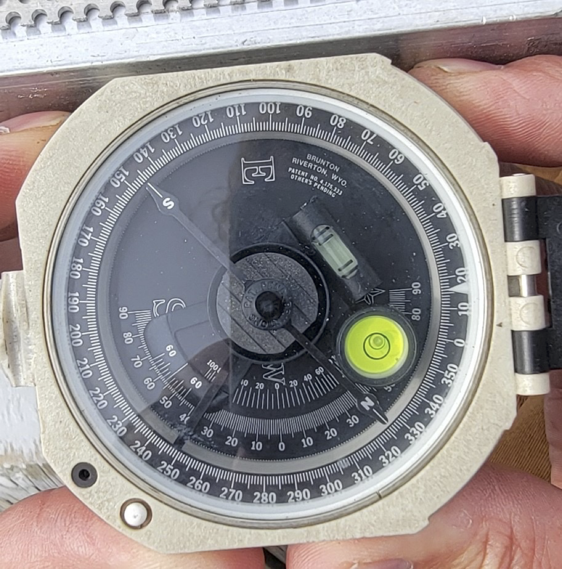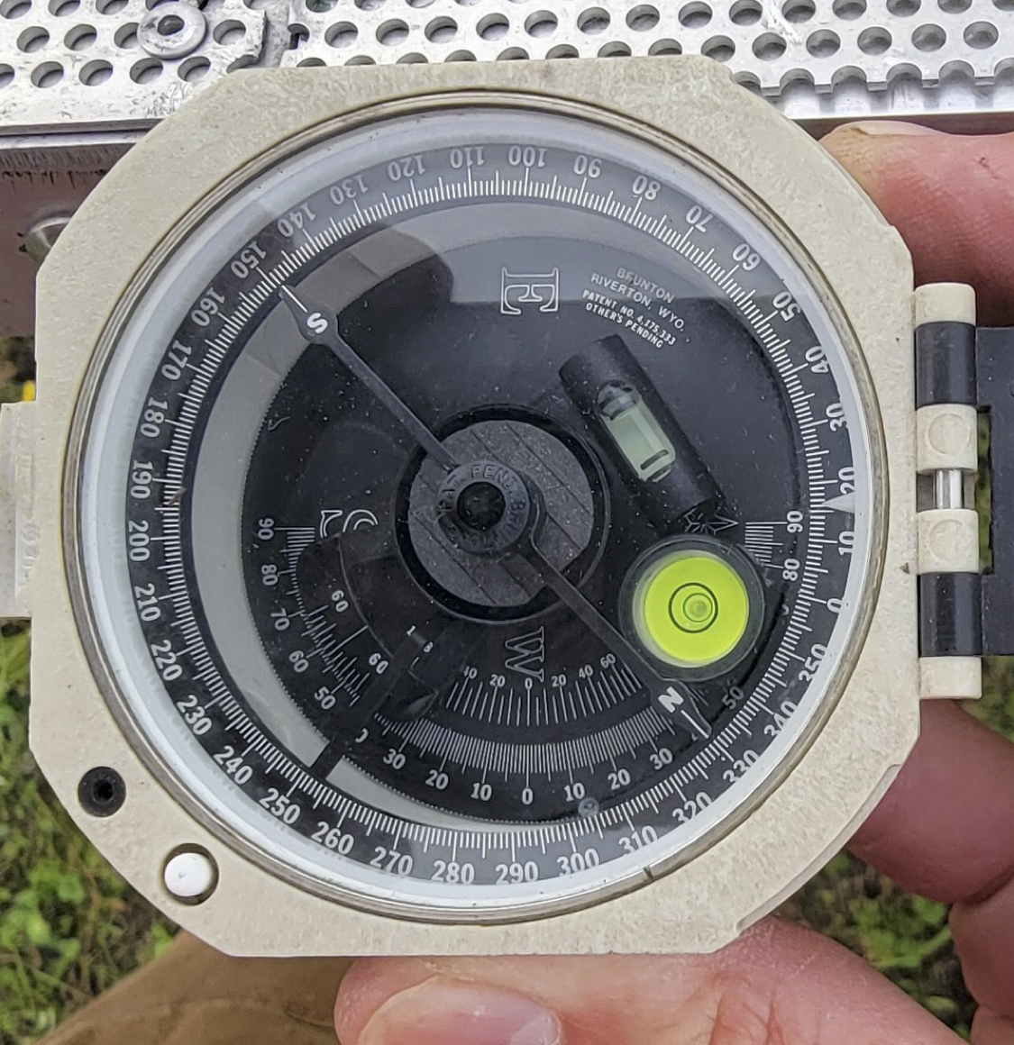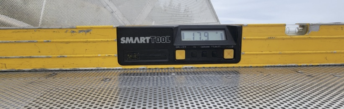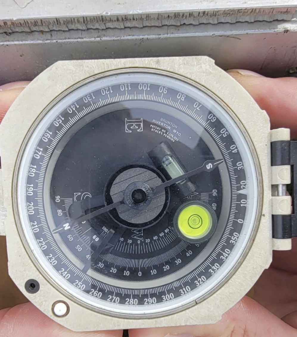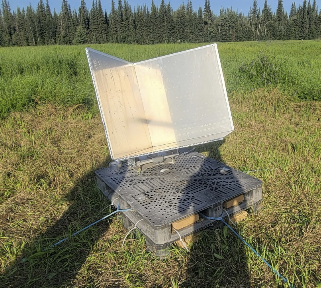 During our July inspection, this target was rotated and realigned for ascending NISAR passes. To secure the pallets to the ground, we used guyot tethers and ensured that the turnbuckles were tight. We also staked down the pallets with one stake on either side. In August, we surveyed this target using GNSS for 18 hours. After the survey, we replaced the reflector on its mount, secured it, and verified the pointing angle to be 326° with a tilt of 16.8°