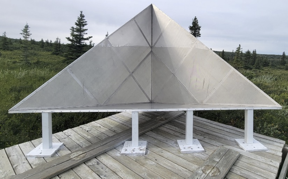 During our inspection in August, we found the reflector in good condition, and all the tie-downs were secure and properly tensioned. The platform underneath is holding fast to the soggy tundra; it, too, was found to be in good shape.